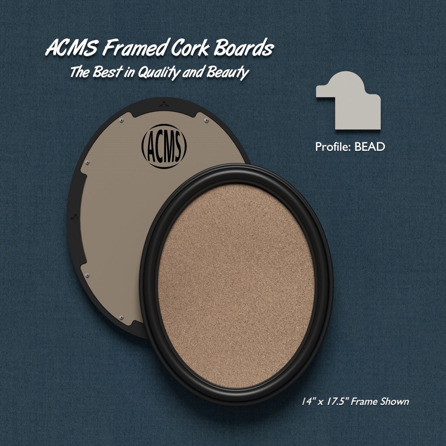 ACMS Oval Framed Corkboard - 1 3/8" BEAD Profile