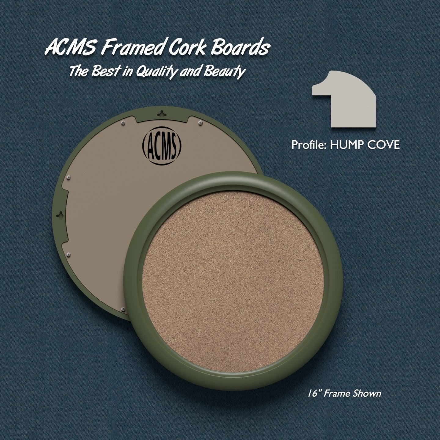 ACMS Round Framed Corkboard - 1 3/8" HUMP COVE Profile