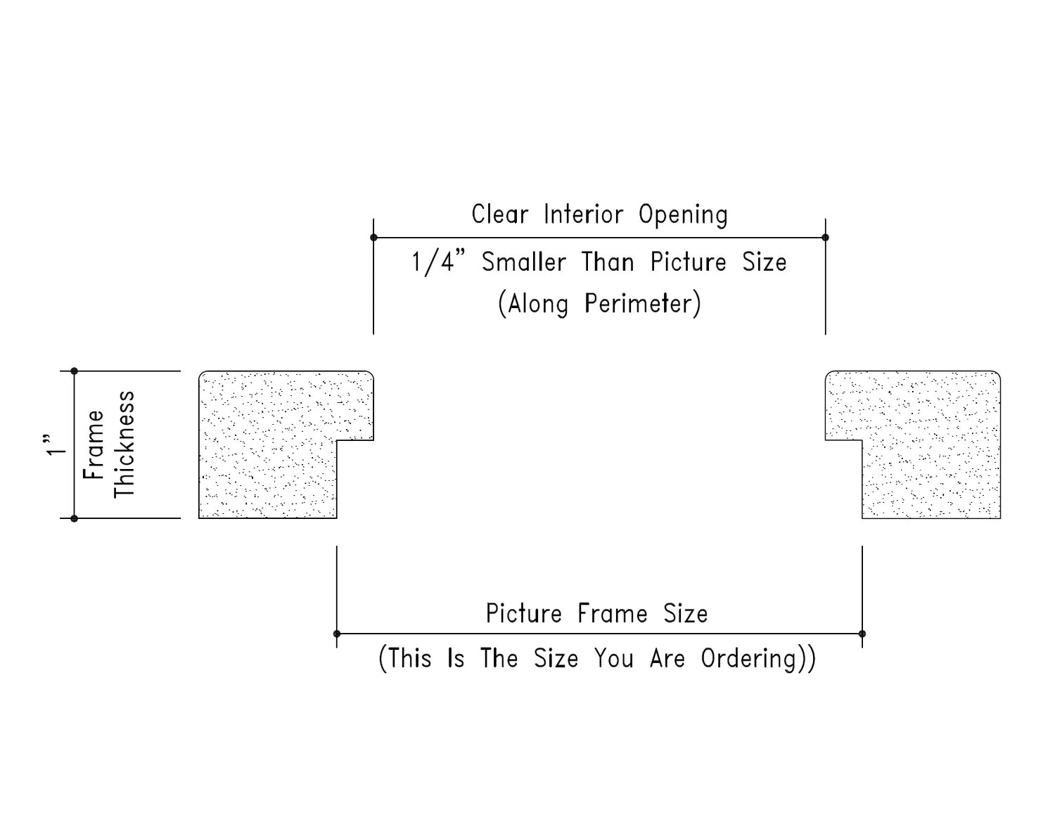 The rabbet width (seat) is 1/4" all around - which means 1/4" of your picture perimeter will be hidden.
